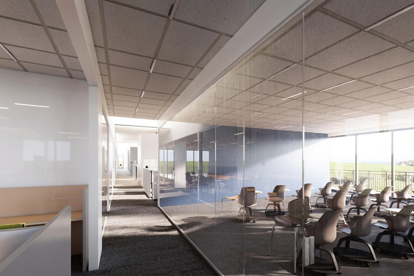 The new warehouse-office prototype for Smartlink technologies is strategically designed to meet their shipping and warehouse needs. In an effort to unify the different departments under one roof, the program calls for offices over the warehouse. Embedded in the design is also future flexibility; to convert the warehouse and office floor-plate into multiple tenants or to switch the warehouse to an office altogether. The simple bar building and vaulted roof allow for structural and thermal efficiency while the exterior balcony and stair maximize rentable square footage and interior layout flexibility. The narrow width and clerestory provide ample daylight for open-office or cellular configurations.